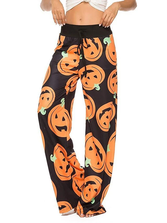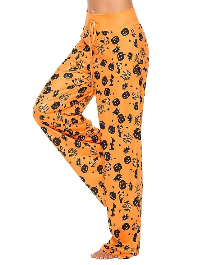 Women’s Pants Pajama Pant Pumpkin Spiders Simple Casual Soft Home Halloween Daily Polyester Breathable Pant Summer Spring Sunflower Color Black