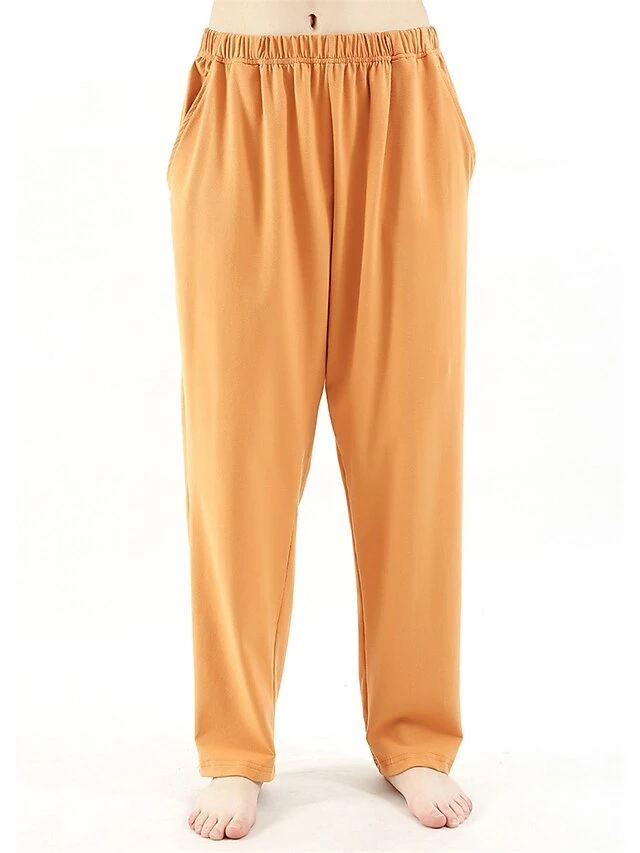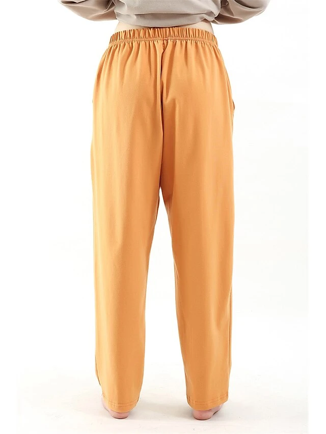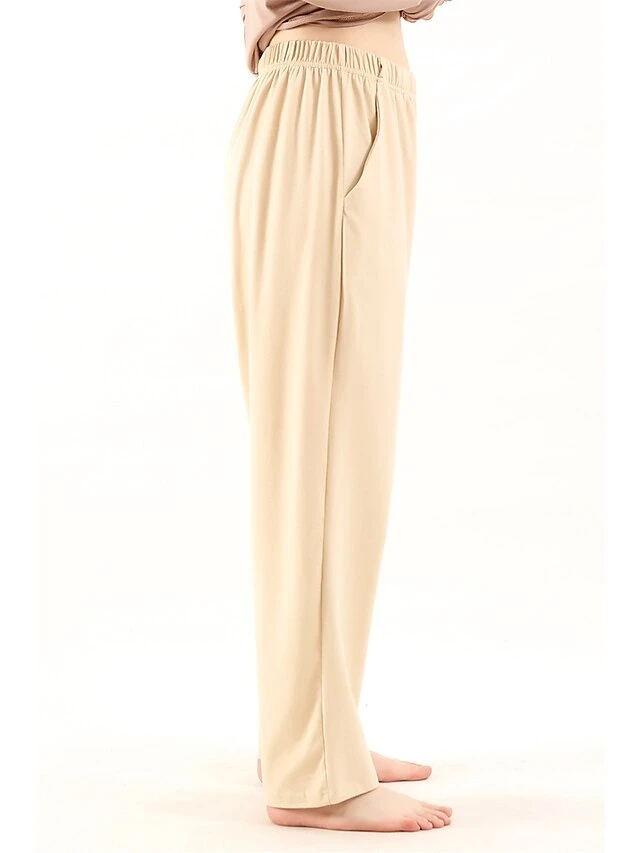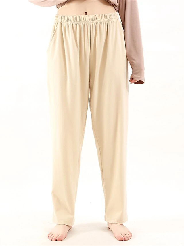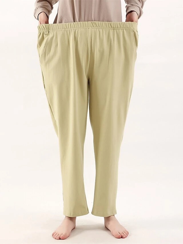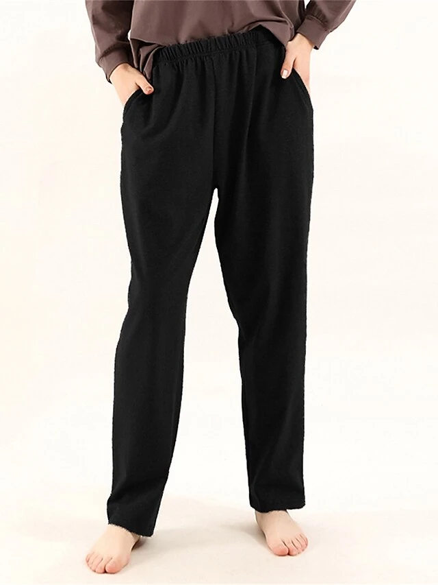 Women’s Plus Size Cotton Lounge Pants Pure Color Fashion Casual Comfort Home Street Daily Cotton Warm Gift Pant Pocket Elastic Waist Fall Winter Elegant Black Ivory White