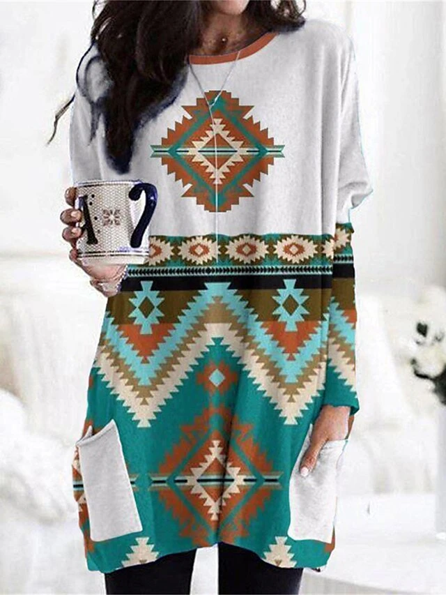 Women’s Plus Size Loungewear Nightgown Nightshirt Dress Geometic Casual Comfort Home Daily Vacation Polyester Breathable Crew Neck Long Sleeve Pocket Fall Winter White Green