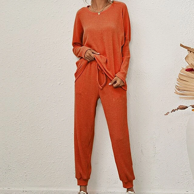 Women’s Plus Size Loungewear Sets Nighty 2 Pieces Pure Color Fashion Sport Simple Home Street Daily Polyester Breathable Gift Crew Neck Long Sleeve T Shirt Tee Pant Elastic Waist Sporty Winter Fall