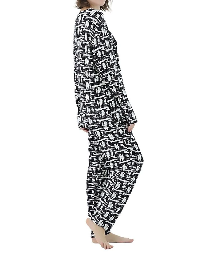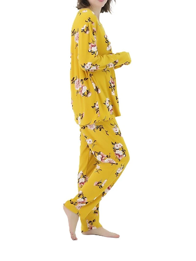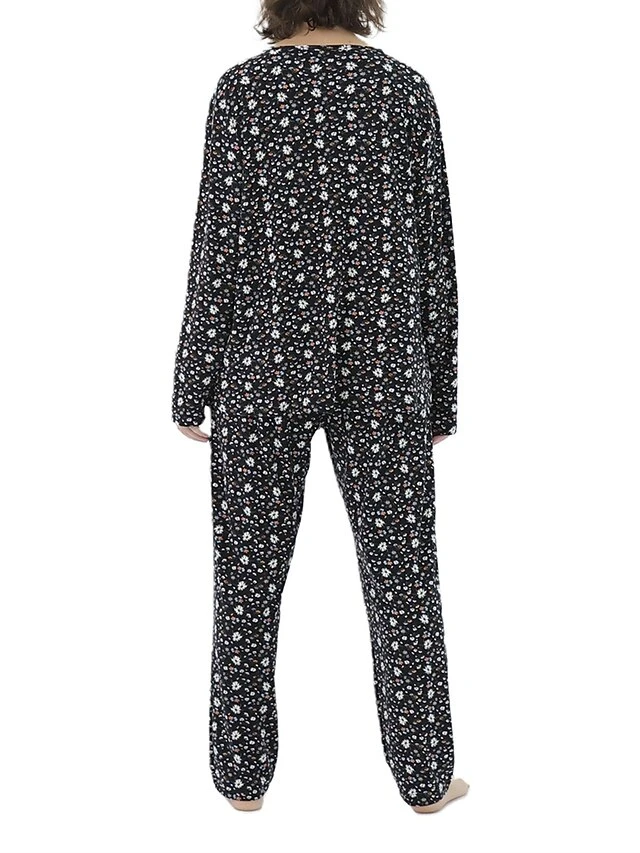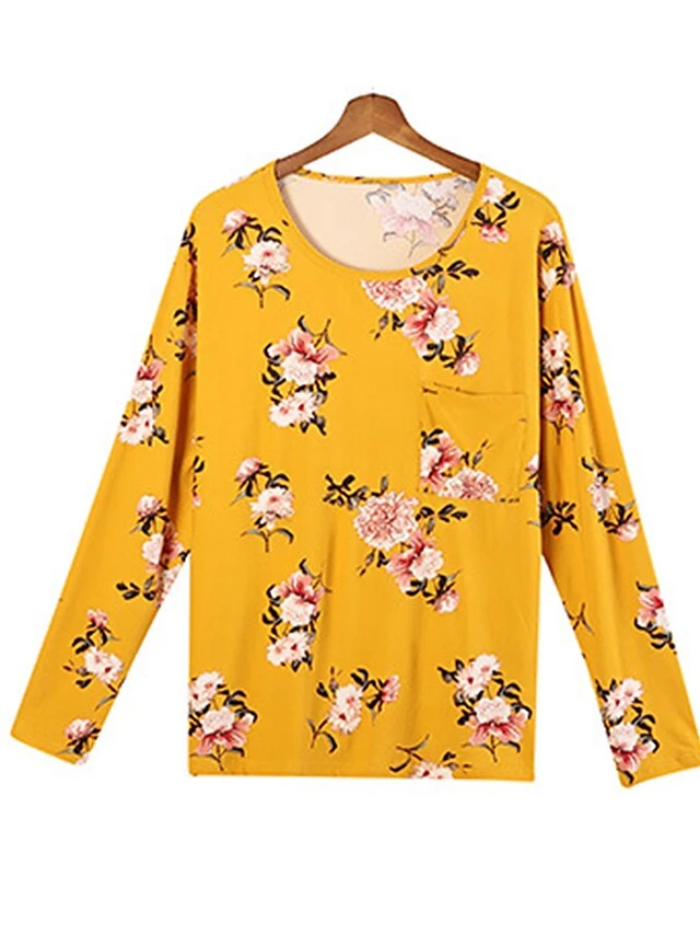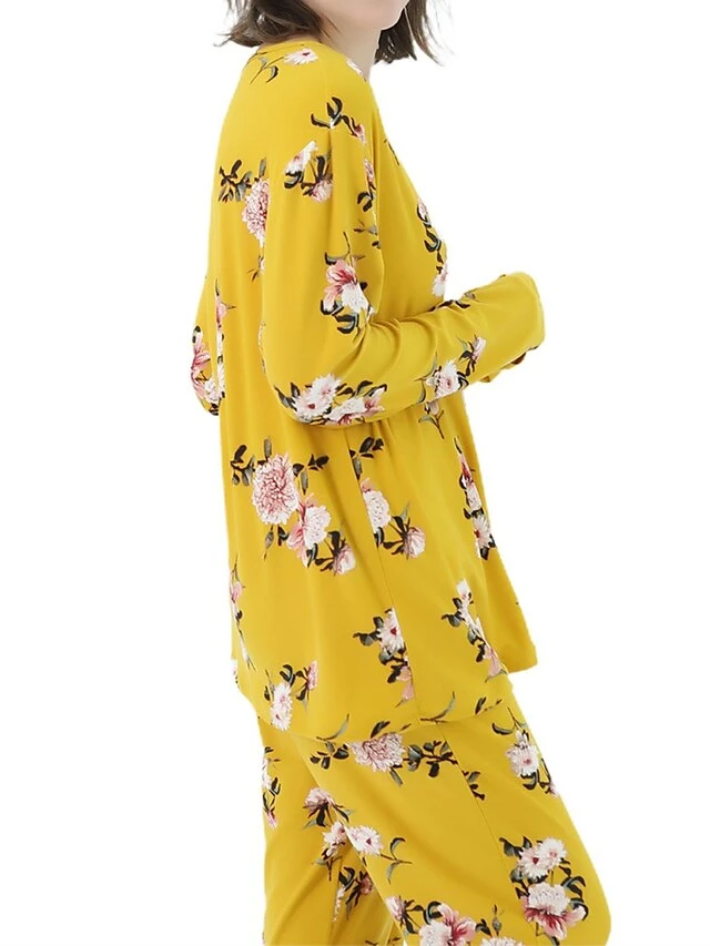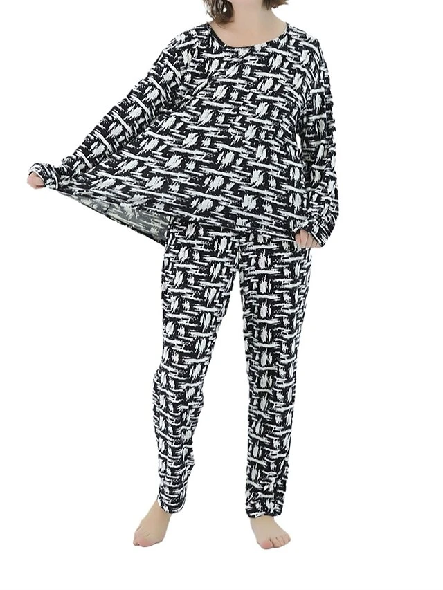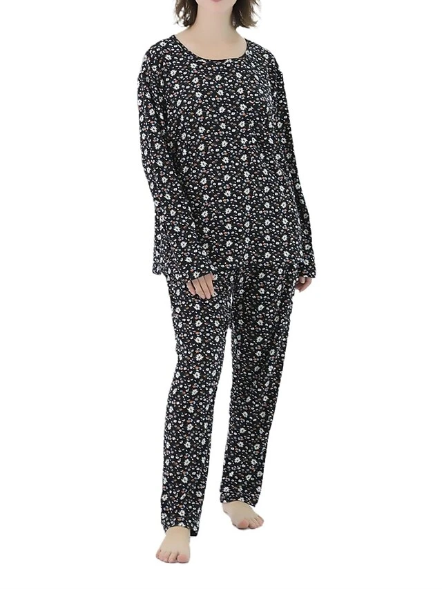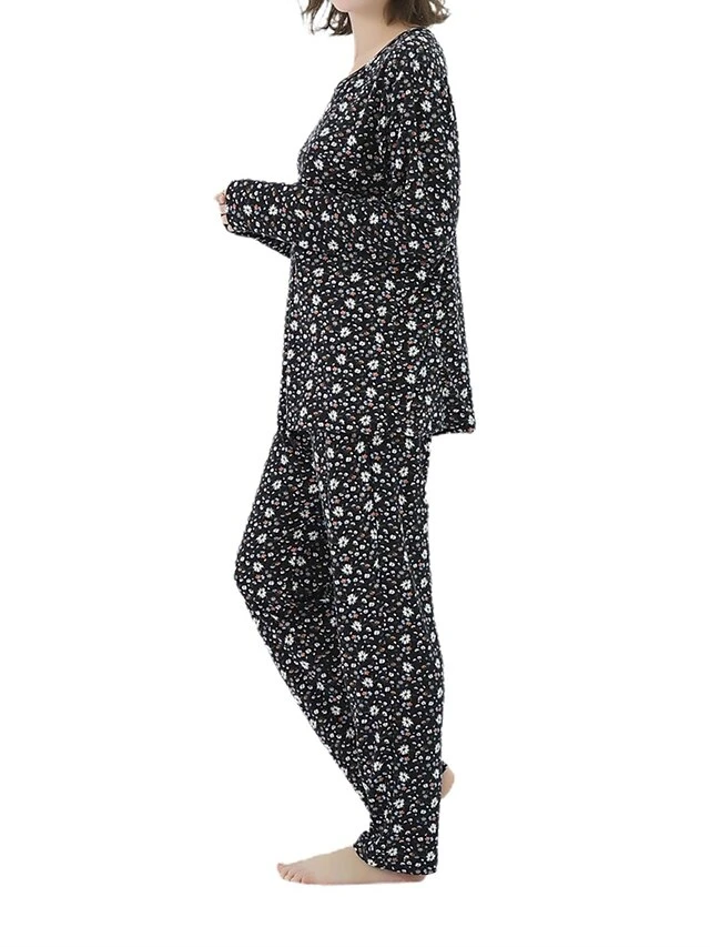 Women’s Plus Size Loungewear Sets Stripe Flower Warm Fashion Casual Home Street Daily Polyester Warm Breathable Crew Neck Long Sleeve T Shirt Tee Pant Fall Winter Black Strips Black Daisy