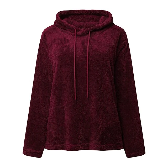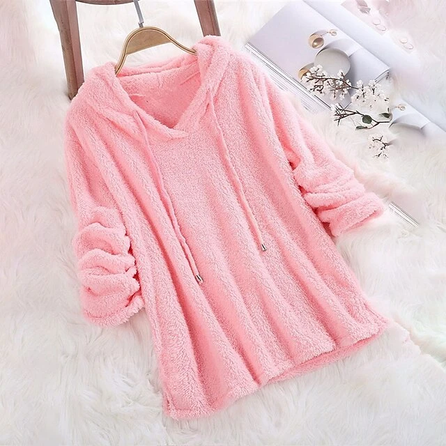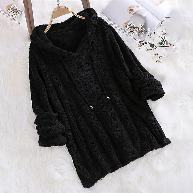 Women’s Plus Size Loungewear Top Pure Color Warm Simple Plush Home Daily Vacation Fleece Hoodie Long Sleeve Fall Winter Black White