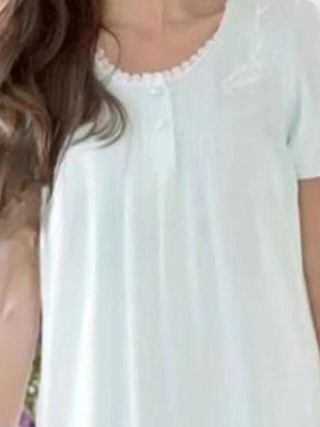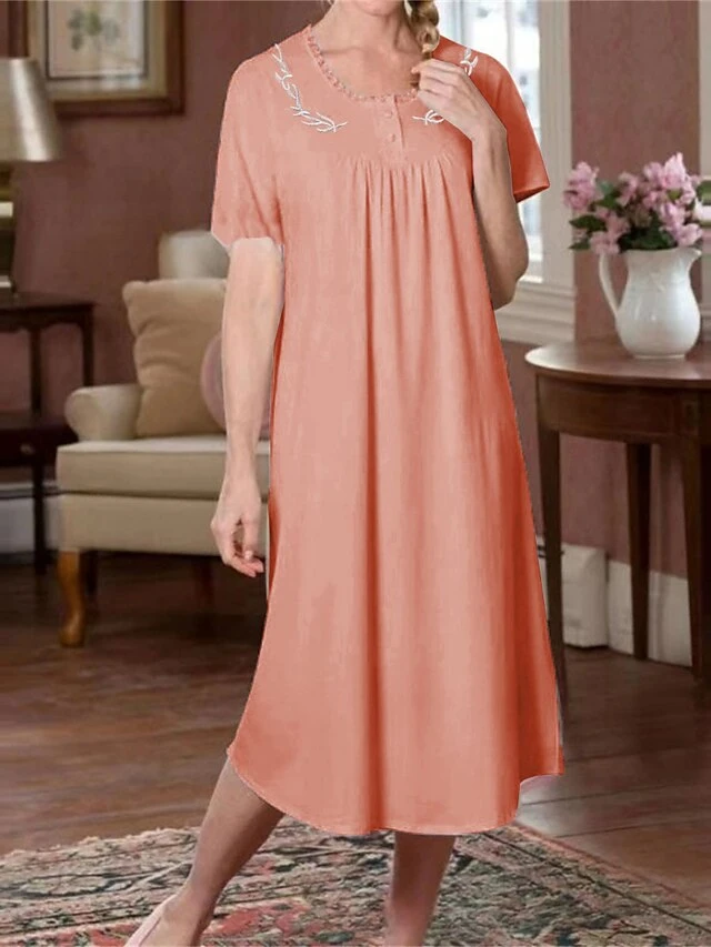 Women’s Plus Size Pajamas Nightgown Nightshirt Dress Pure Color Simple Casual Soft Home Daily Bed Polyester Breathable Crew Neck Short Sleeve Button Summer Spring Light Green Pink