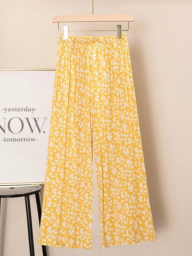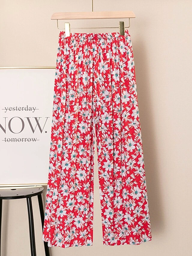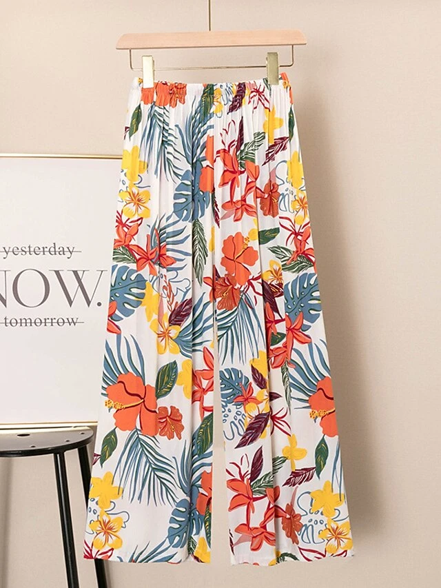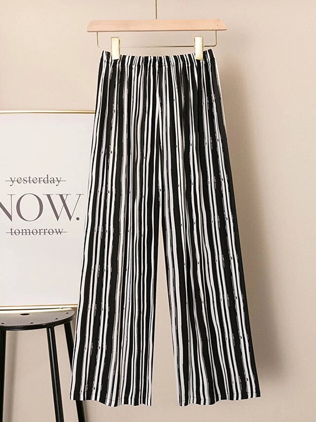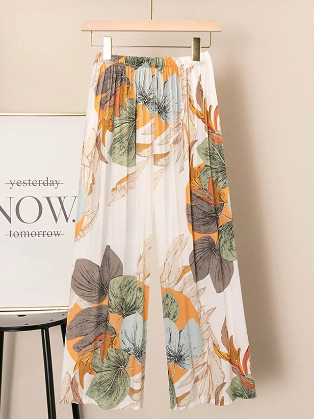 Women’s Plus Size Pants Stripe Flower Casual Comfort Home Daily Cotton Blend Comfort Long Pant Pant Spring Fall 1# 2#