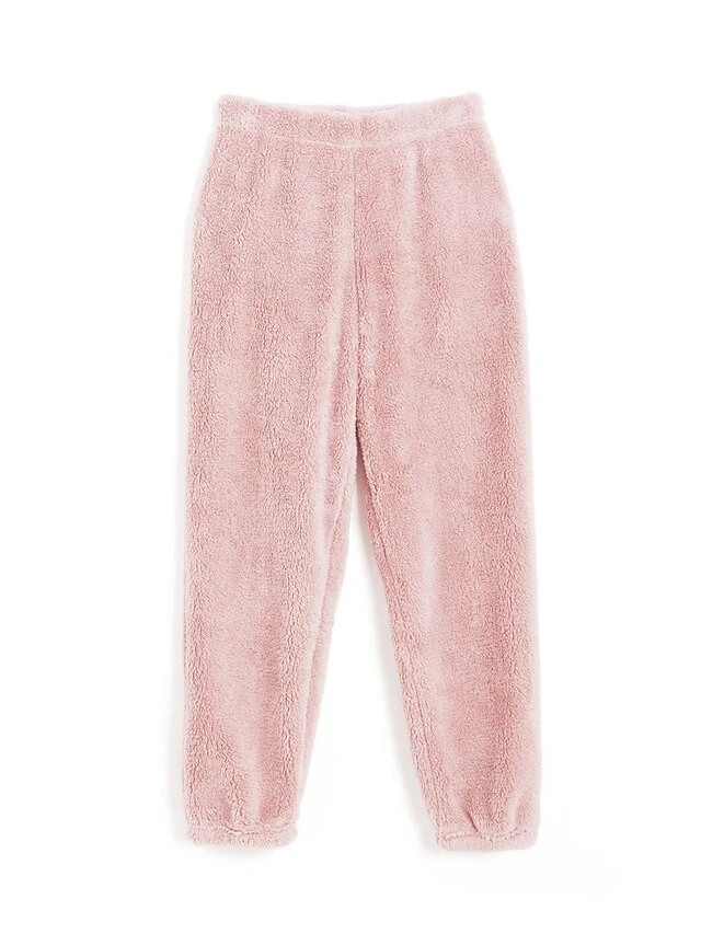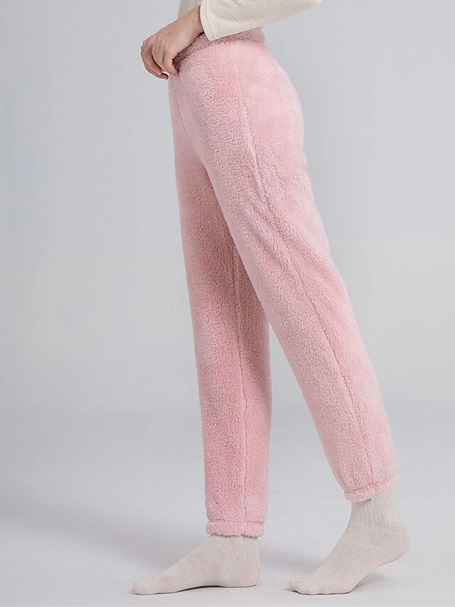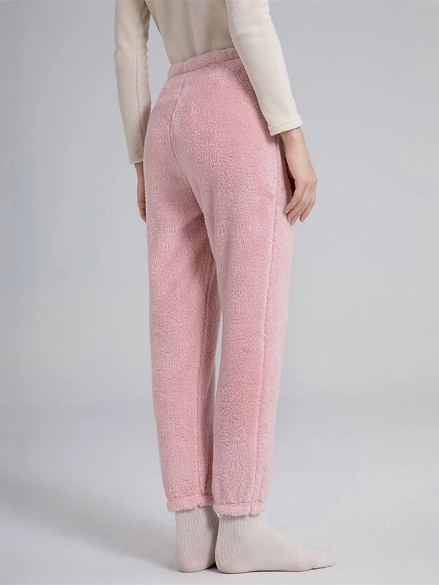 Women’s Polar Fleece Pajama Pants Pure Color Simple Plush Casual Street Daily Date Warm Breathable Pant Elastic Waist Fall Winter Lotus Pink Pink