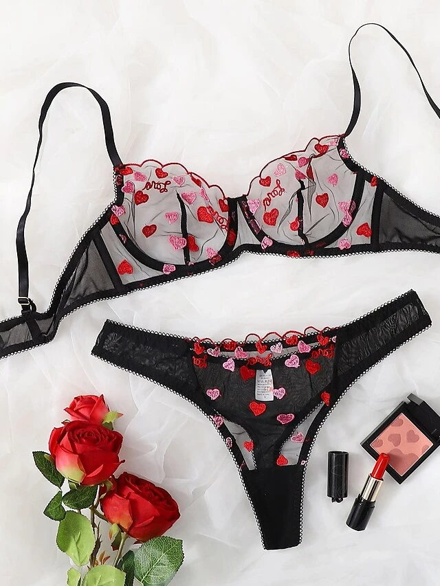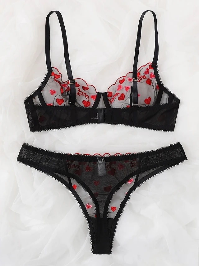 Women’s Sexy Lingerie Sexy Bodies Sets Lingerie Set 1 Set Pure Color Romantic Fashion Home Valentine’s Day Polyester Sleeveless Embroidery Buckle Summer Black / Super Sexy