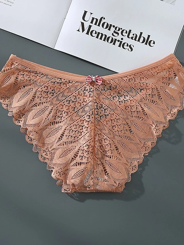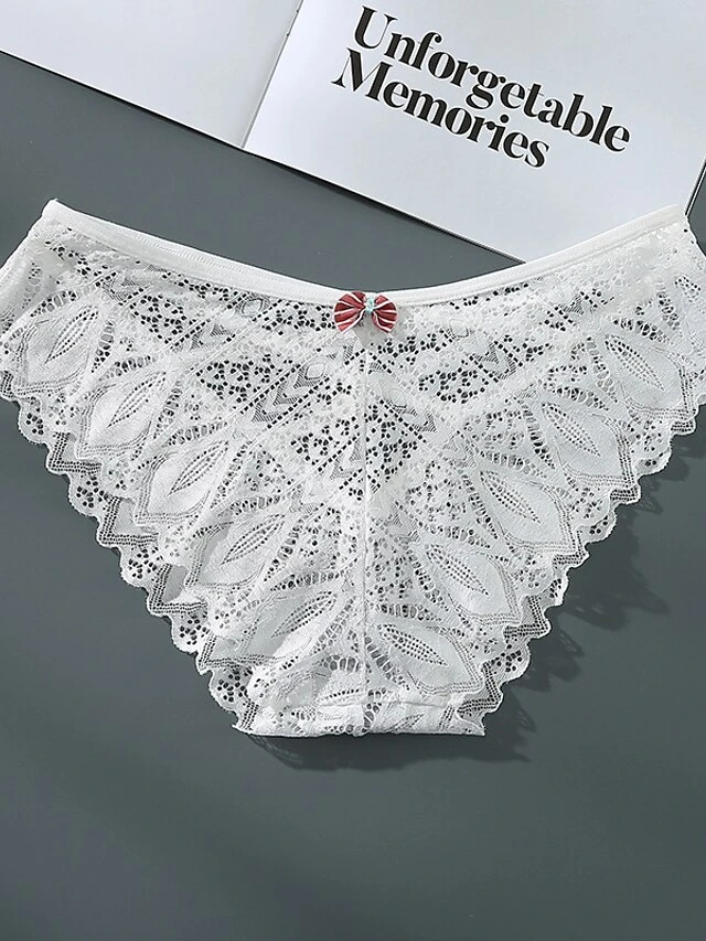 Women’s Sexy Panties Brief Underwear 1pc / Pack Underwear Sexy Criss Cross Bow Hole Lace Nylon Mid Waist Sexy Black Khaki Red S M L