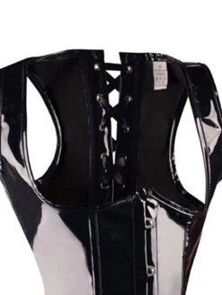 Ladies Sexy Patent Leather Long Sleeve Hollow String Lingerie