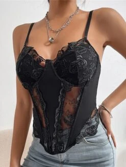 Women Sexy Perspective Embroidery Temptation Separate Body In The Suit