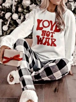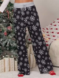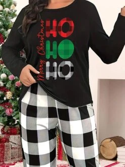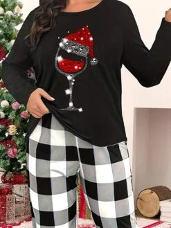 Women’s Christmas Pajamas Top Star Santa Claus Warm Soft Christmas Spandex Fall Winter Black Red