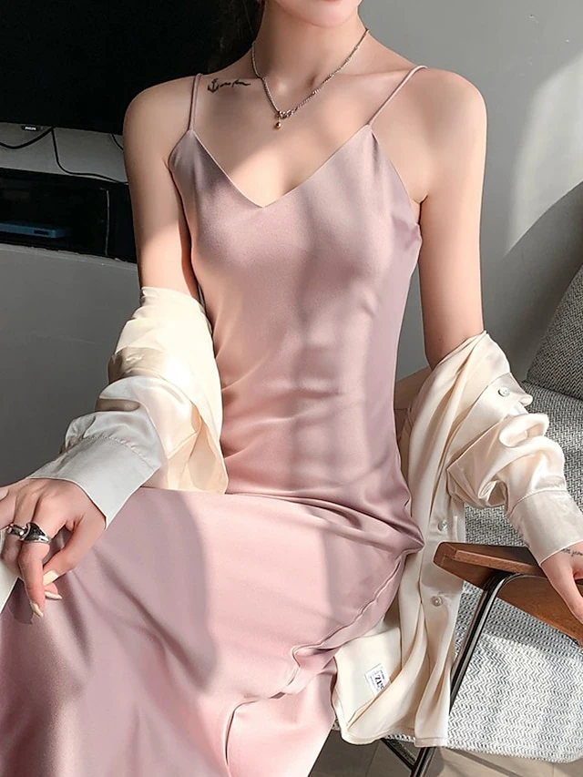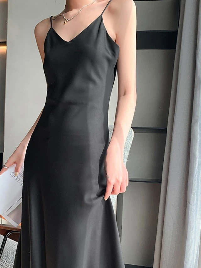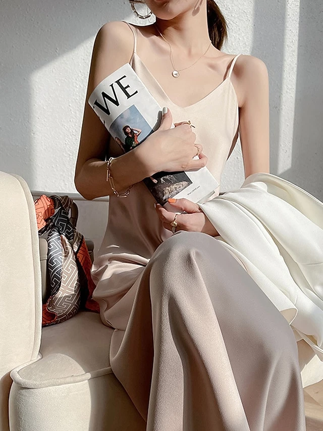 Women’s Slip Lingerie Pajamas Nightgown Nightshirt Dress Pure Color Simple Casual Comfort Home Daily Bed Satin Breathable Straps Fall Winter Black White