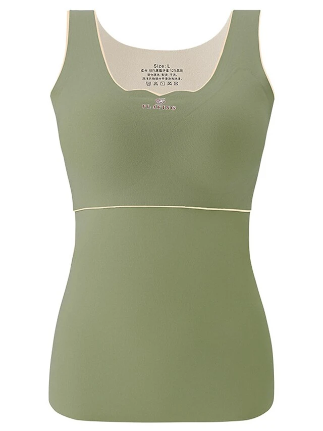 Women’s Top Thermal Shirt Pure Color Warm Fashion Simple Home Street Daily Cotton Warm Breathable Straps Sleeveless Fall Winter Bean Paste Color Black
